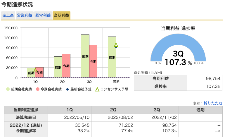 では早速ですがの株価データ(2023年3月15日現在)を見て行きましょう。