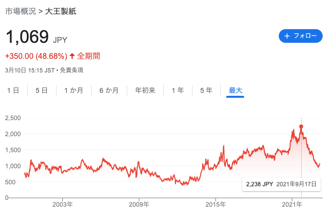 - 株価推移は?大王製紙はなぜ安い?
