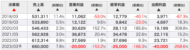やはり新型コロナ拡大した2022年以降、材料費の高騰に伴う業績悪化に伴い配当金が大幅減配が見込まれています。