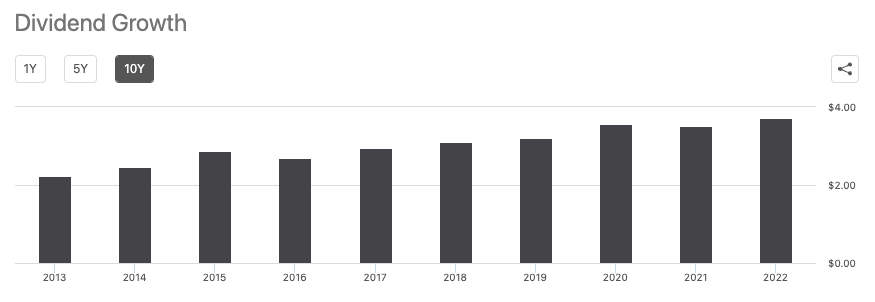 過去5年間の平均年間増配率は4.34%とインフレ率を考慮してもまずまずです。