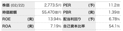 株価の指標はかなり良いですね。注目すべきは配当利回りの高さで、5%程度ということもあり、日本株の中では圧倒的な高配当株といえます。