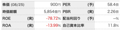 以前は、PERが10倍程度の水準でしたが業績の悪化もあり、かなり高くなっています。